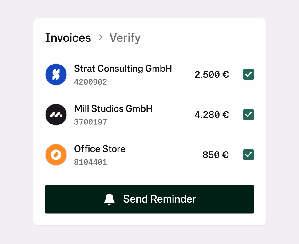 Delays often happen when someone forgets to verify or approve an invoice. To help you keep things moving, you can now send reminders directly from the invoice drawer or table. Send a nudge to anyone with a pending action and keep your approval flow running smoothly without manual follow-ups. Simple, fast, and built to make the month-end less stressful.